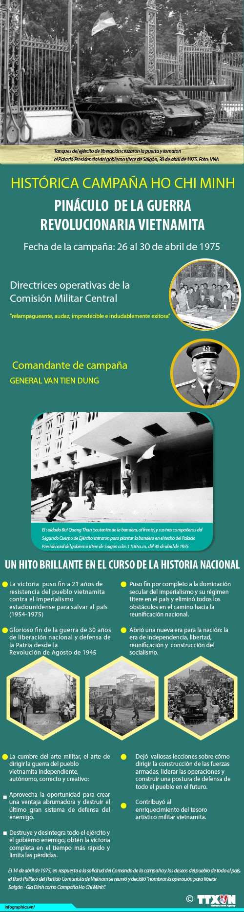 La Campaña Ho Chi Minh, que tuvo lugar del 26 al 30 de abril de 1975, fue el pináculo de la victoria en la guerra revolucionaria vietnamita y creó las páginas doradas más brillantes en la historia de la resistencia del pueblo vietnamita contra los invasores extranjeros.