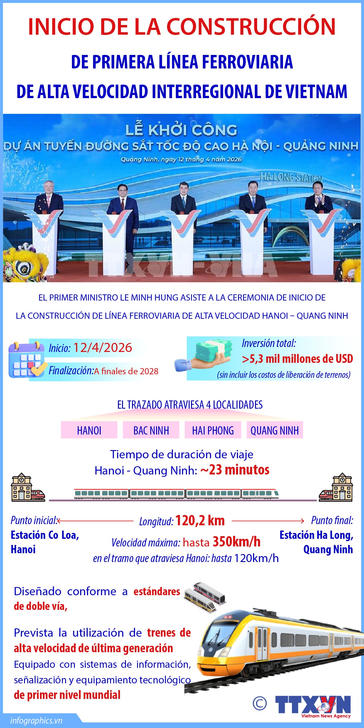 El primer ministro de Vietnam, Le Minh Hung, preside la provincia norteña de Quang Ninh la ceremonia de inicio de las obras de la línea ferroviaria de alta velocidad Hanoi - Quang Ninh, el primer proyecto de este tipo con carácter interregional en el país.